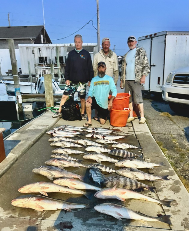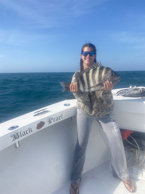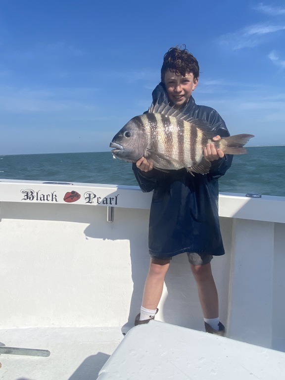 A little windy today keeping OffShore Fleet tied to the docks. Inshore had a good day catching Red Drum and Sheepshead. Chase 12yrs old caught a 11pd Sheepshead on the BlackPearl.
